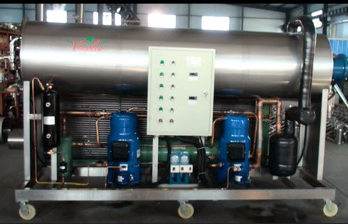 本設(shè)備與準(zhǔn)備冷卻的液體直接接觸部分,均采用不銹鋼制造。并且各管路均采用紫銅管焊接,在刮板速凍機(jī)與壓縮機(jī)直接接觸處均有減震管,以防止壓縮機(jī)在工作時(shí)由于震動(dòng),而減少管路的使用壽命。